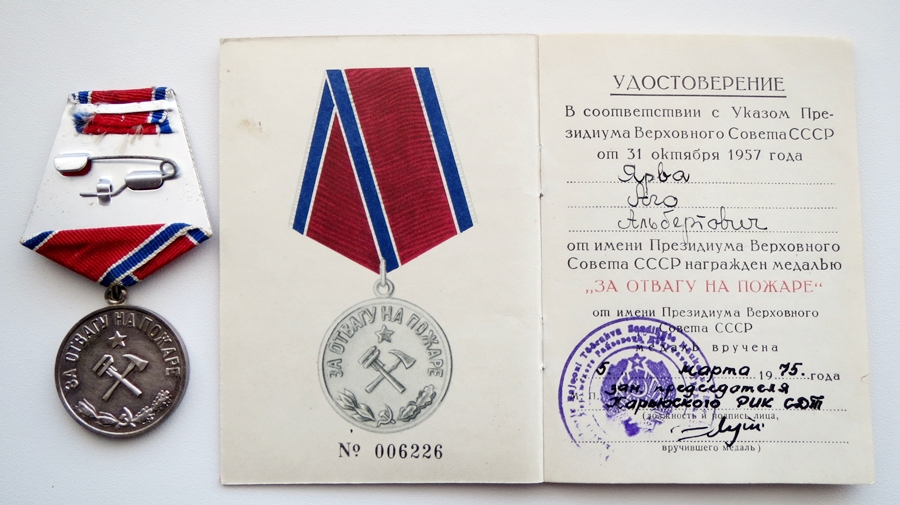Tuntum neist, mida anti inimeste päästmise ja isikliku vapruse eest tulekahju kustutamisel oli 31. Oktoobril 1957 asutatud medal ’’Vapruse eest tulekahjul’’