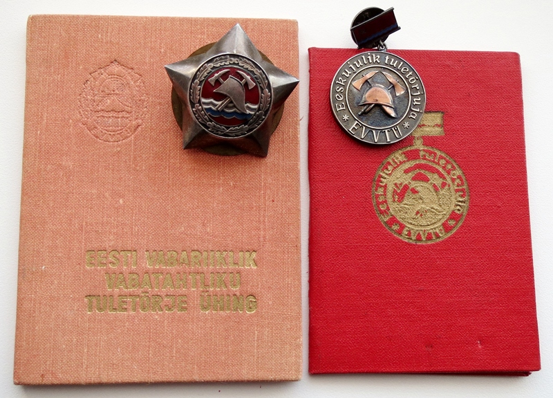 Ja veel on väga huvitavad Eesti Vabariikliku Vabatahtliku Tuletõrje Ühingu rinnamärgid Teenete eest.
