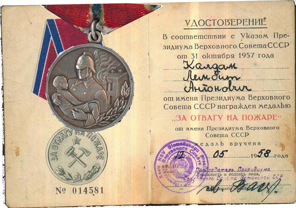 Fakt on see, et 1958. aasta oli ENSV-s esimene mil Vapruse eest tulekahjul medaliga autasustati ja ka number on teada- 11 inimest. 1958. aasta Ülemnõukogu teatajast leidsin üles aga kümme, kõik on siin nüüd kenasti näha ka. Kaldamit, kelle dokument teemas olemas on ( pilt on on kuskilt netist pärit ), aga 1958. a ülemnõukogu teatajas üldse sees ei ole.1958. a teataja järgi sai medali 10 inimest. Huvitav, kas siis ENSV Ülemnõukogu autasude osakonna registris on viga...