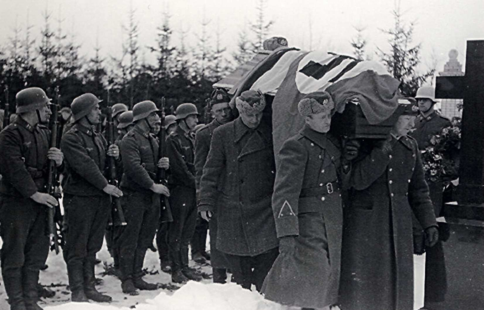 Kpt. Tiimanni matused Jőgeval kevadel 1944. T. langes vene langevarjurite kuulist nende jälitamisel otse pähe. Matusest vőtsid osa saksa sőjaväe osa ühe kindrali, piirkonna kom. ja eestlaste omakaitse ülema kol Jaansoniga