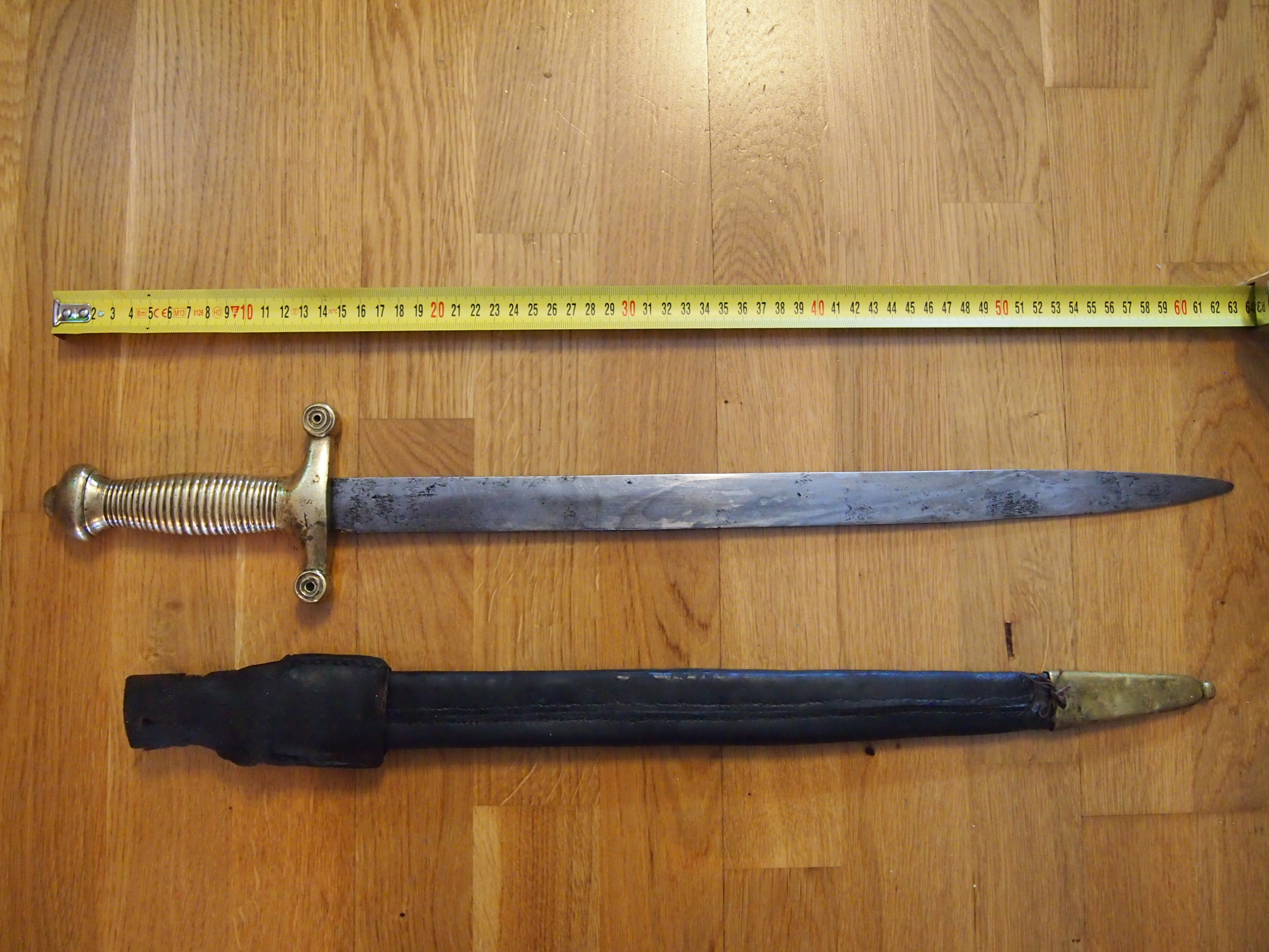 Külmrelvakatalooge ja inernetiotsinguid kasutades pole suutnud riista täpselt tuvastada. Vene 1848.a. mudel tessak on sama pikk, kuid laiema ja kahepoolse teraga, kuid see on vaid ühepoolse teraga. Kõige lähedasem võiks ehk olla Taani 1854.a. mudel, aga ka nagu päris mitte see. Ainsaks markeeringuks on käekaitsel "S".