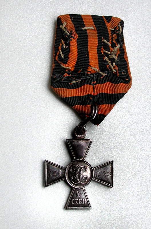"Гк 4ст. No117653 – награжден Меншиков Михаил, ефрейтор, 108 Саратовский пехотный полк. За бой у деревни Голынки, 8.02.1915"