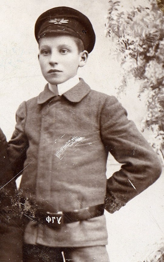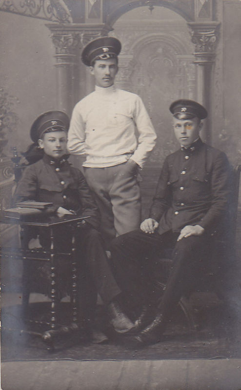 Põhimõtteliselt ei pea merekooli kasvandikuga asja nii keeruliseks ajama. Võib olla ükskõik millise Eestis (foto on vist Eestist) tegutsenud merekooli kasvandik - Pärnu, Narva, Käsmu, Heinaste, Paldiski või Kuressaare oma. Kõik olid 20.sajandi alguseks "kellegi" nimelised juba, peale seda kui koolid kohaliku omavalitsuse (kelleks olid sakslased ja enamasti nende erainitsiatiiv ja ka raha) alt riigi alluvusse viidi.