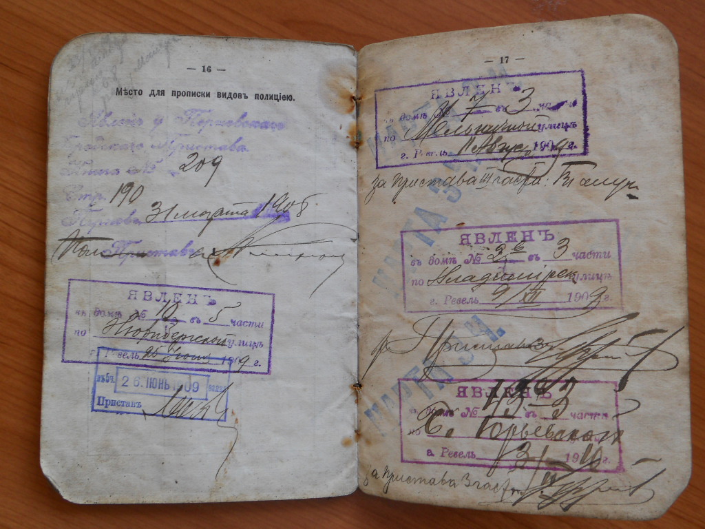 Sattus kätte siniste kaantega pass Mihkel Kriveri nimele Koonga vallast Pärnumaal.Huvitavaks teeb dokumendi tohutu hulga templite ''ЯВЛЕНЪ'' olemasolu.Oskab keegi lahti seletada?Ise oletan,et tegu võis olla tsaariaegse poliitilise pahalasega,kes pidi politseis regulaarselt nägu näitamas käima,sest koos passiga tuli ka Sotsialistilise Partei konstitutsioon aastast 1916.