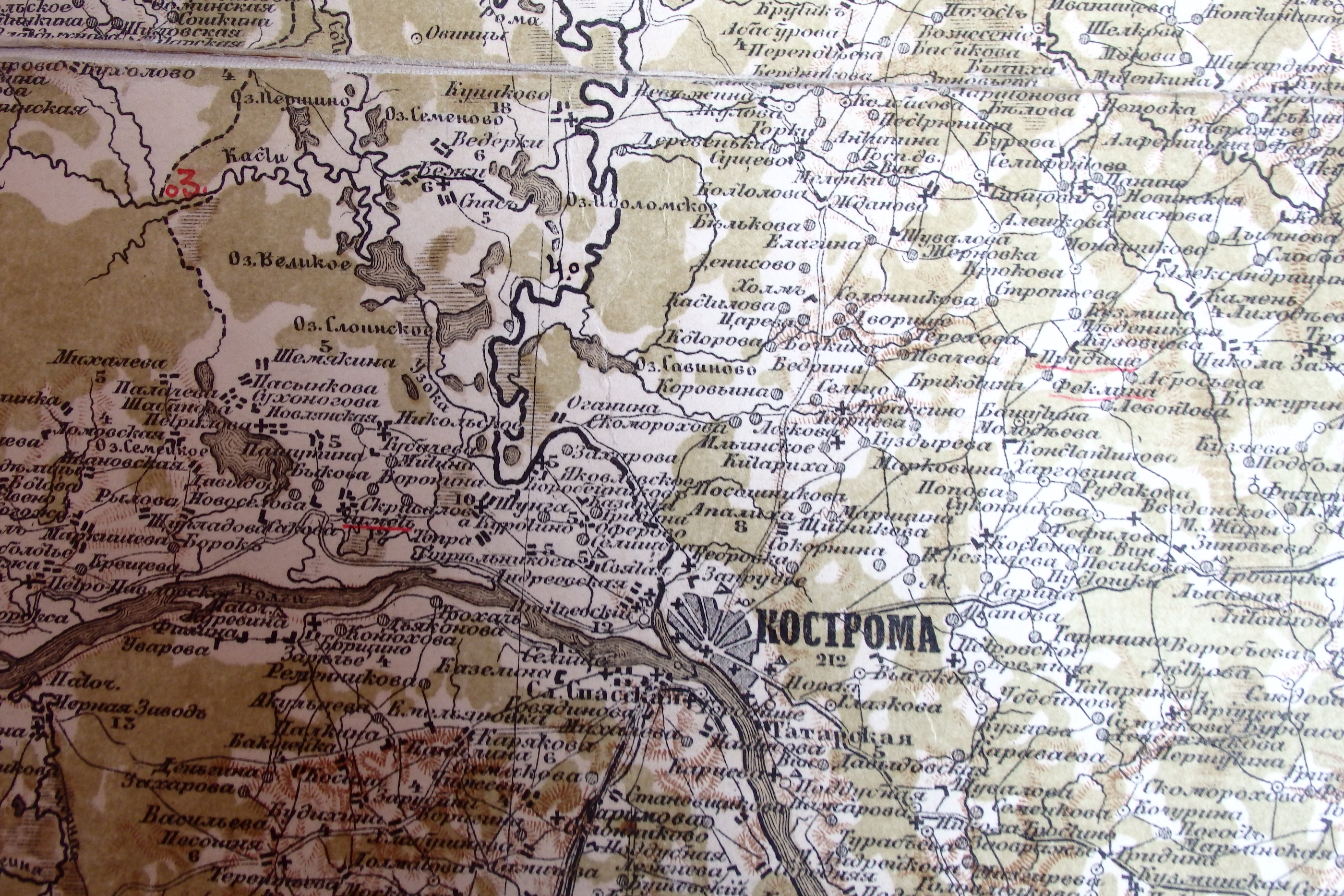 Esivanemate talust tuli välja selline tsaariaegne? kaart, kus peal Kostroma asula jms...Peale on käsitsi kirjutatud 1905. ning kaardi enda peale on ka tehtud märkmeid. Piltidel näha. Kas keegi oskab seda millegagi seostada. Millal toodetud? Sellises seisukorras on tal mingisugune väärtus?
