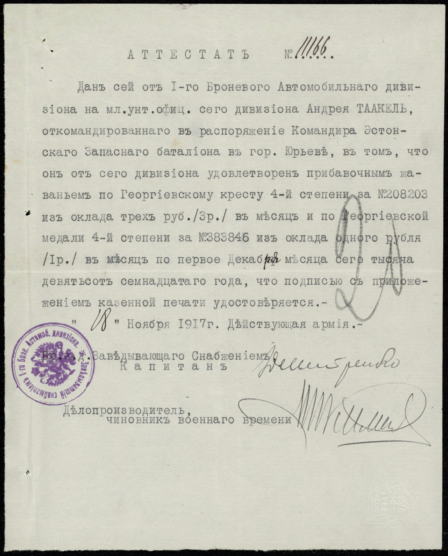(391. Andres Taakel - Georgi risti IV ja III järk (sünd. 1878 Tarvastus, 1906-1912 Viljandis ratsapolitseinik)