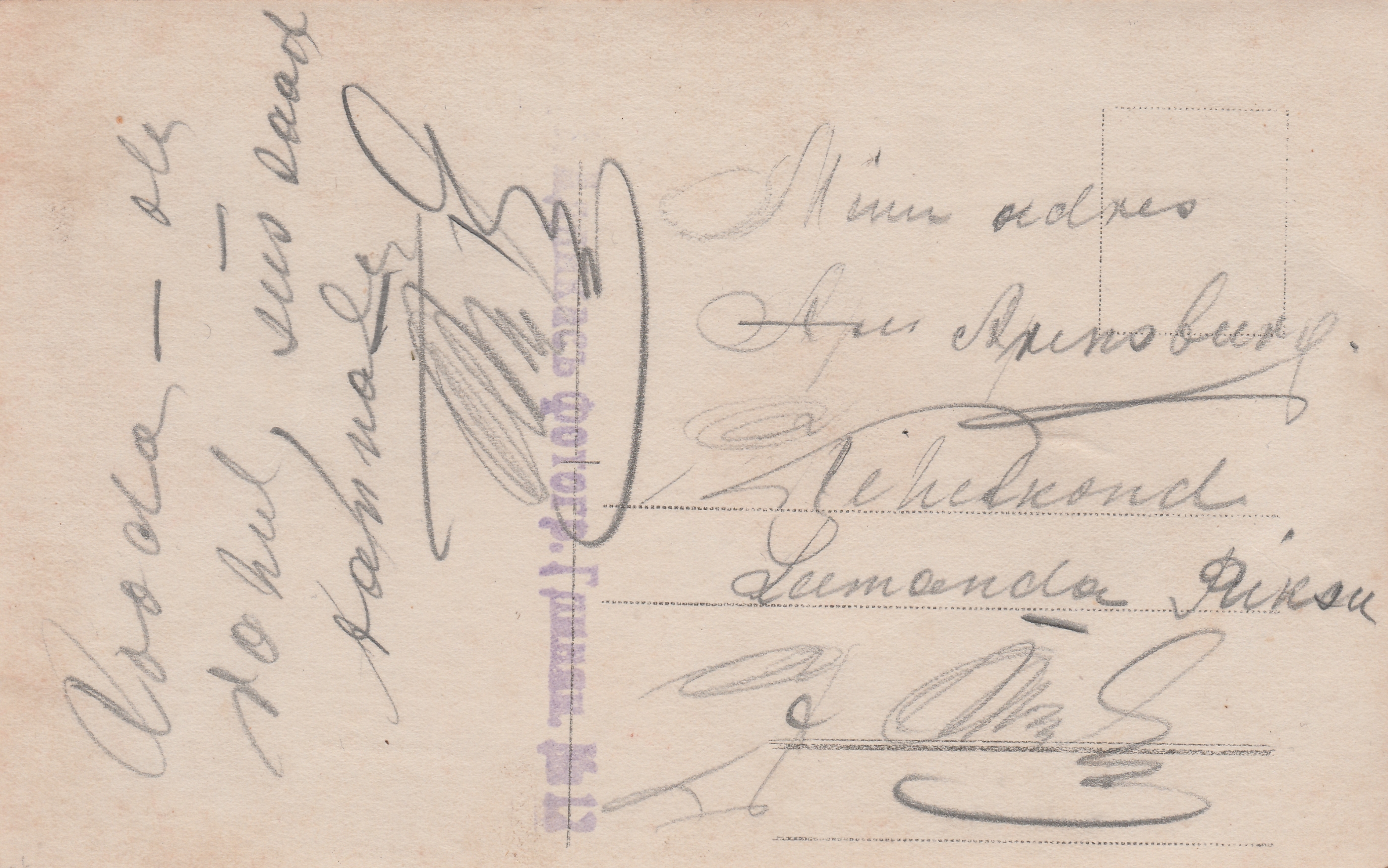 Lisan omalt poolt ka ühe foto,aadressküljel oleva teksti järgi võiks olla Saaremaa mehi,Kihelkonnast,kahjuks allkirja ei oska välja lugeda,aga nutikamad kindlasti.