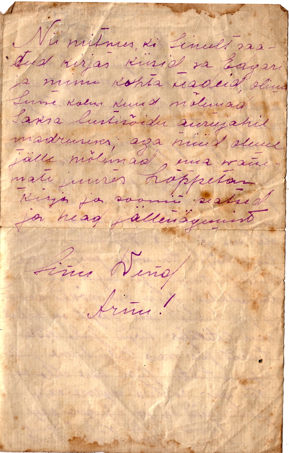 Esimene eestikeelne kiri vennalt ja emalt Roman Karele Garmisch-Partenkircheni vangilaagrisse.