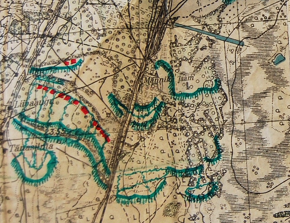 Kaevikuliinide taga asunud jao- ja rühmavarjendid. Tänase seisuga on teepoolsed paar punkrit alles, üks õhitud ja ülejäänud on vajunud nüüdse tehisjärve põhja.
