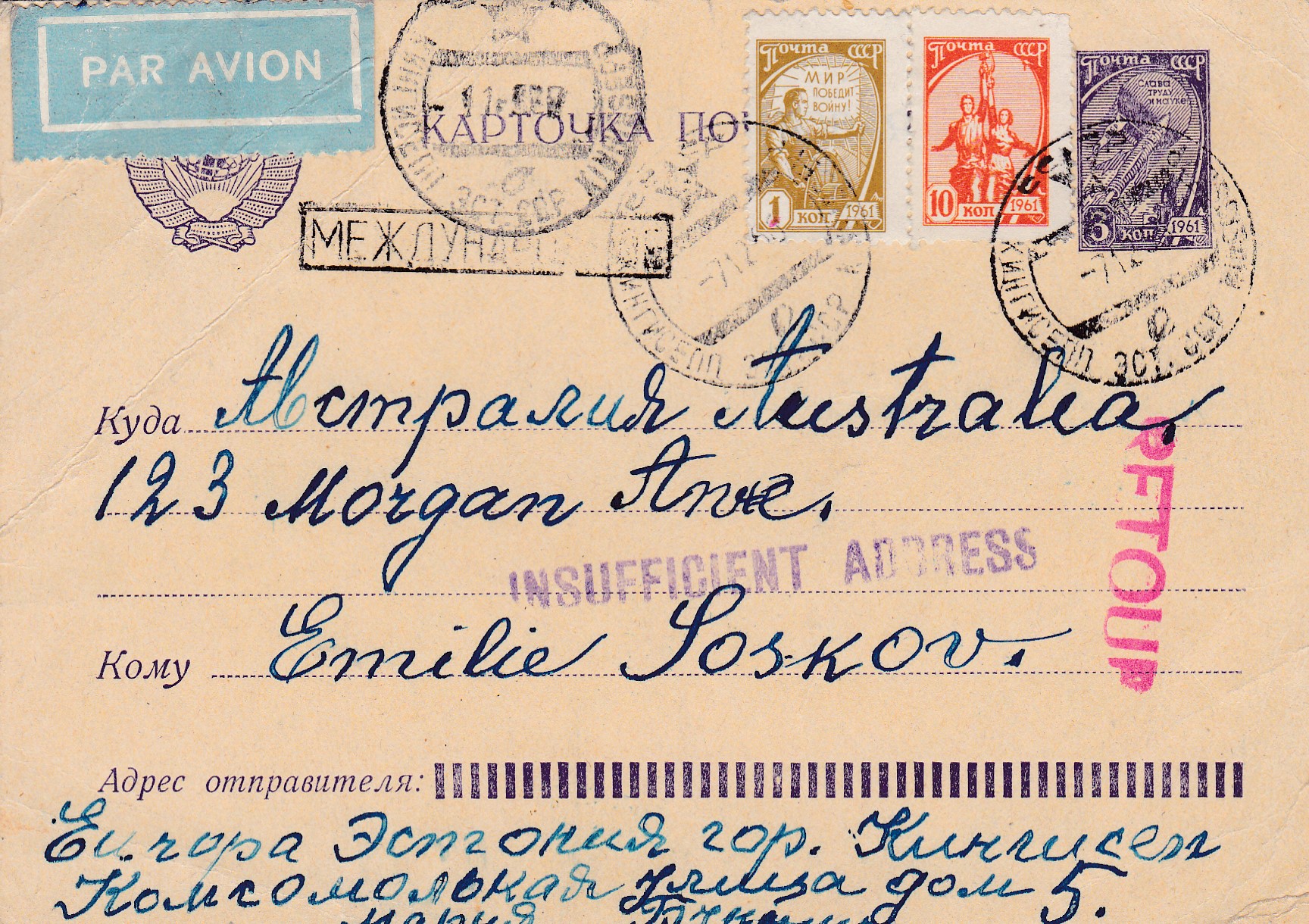 Panen siis ühe huvitavama, mis saadetud Austraaliasse.Huvitav,kaugele see üldse jõudis.
