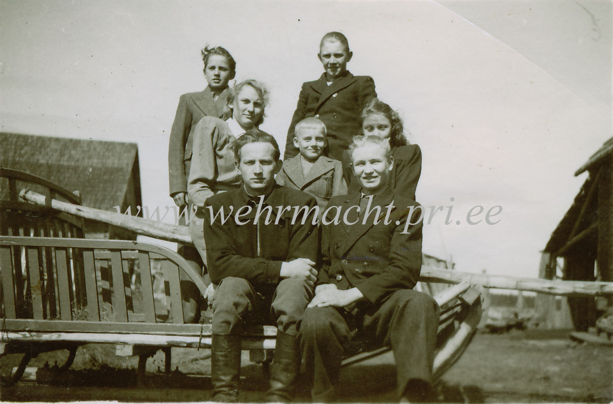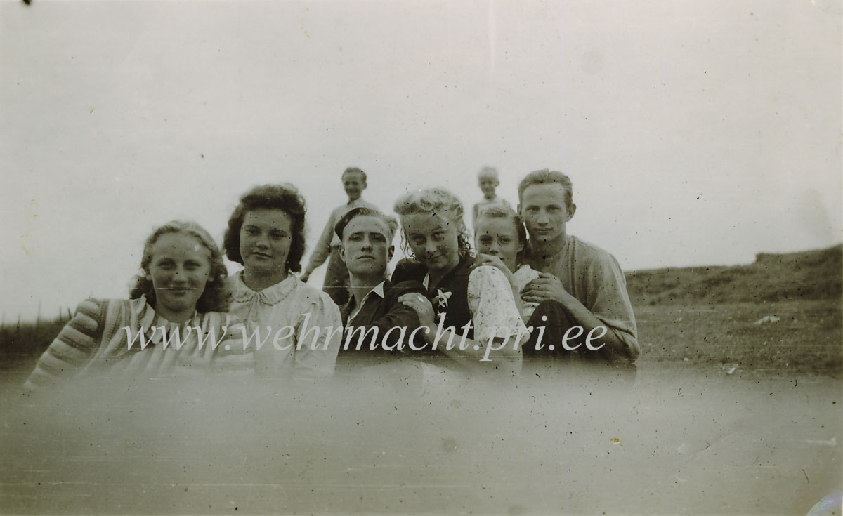 Jaan Illaste juunior ja Helmut Valdma koos Konuvere küla neidudega.