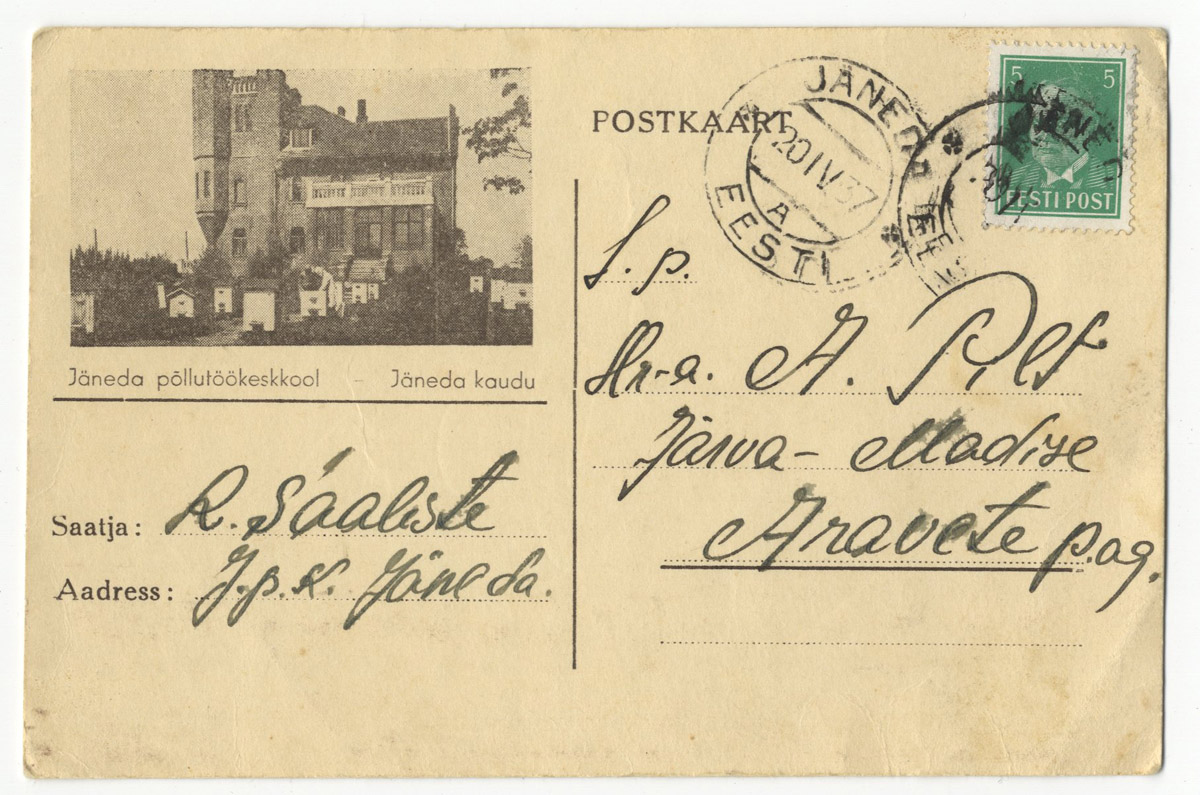 Mõned kuud tagasi sattus täiesti juhuslikult kätte selline postkaart/kiri, kirja sisu on täiesti ebahuvitav aga tore on see, et kirjutajaks on olnud hilisem legendaarne metsavend Richard Saaliste. Postkaart on saadetud ajal, kui ta õppis Jäneda põllutöökeskkoolis.