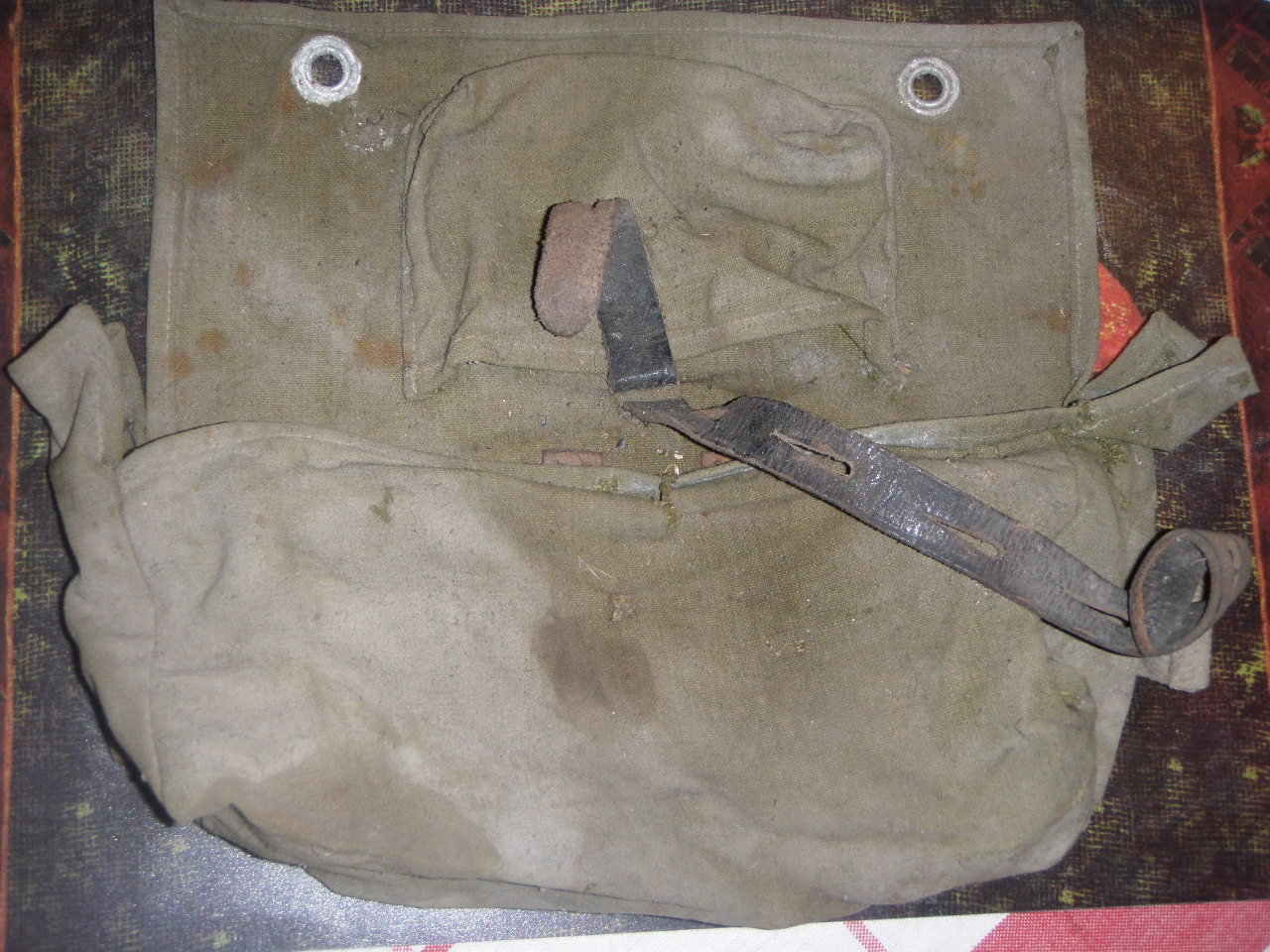 saadud siis selline imelik kott. kas tegu suus saksamaal toodetud leivakotiga. nööbidl mõlemal küljel al. võitoosi sahtlit hoidis nahkrihm vist kinni. aidake kes oskab.
