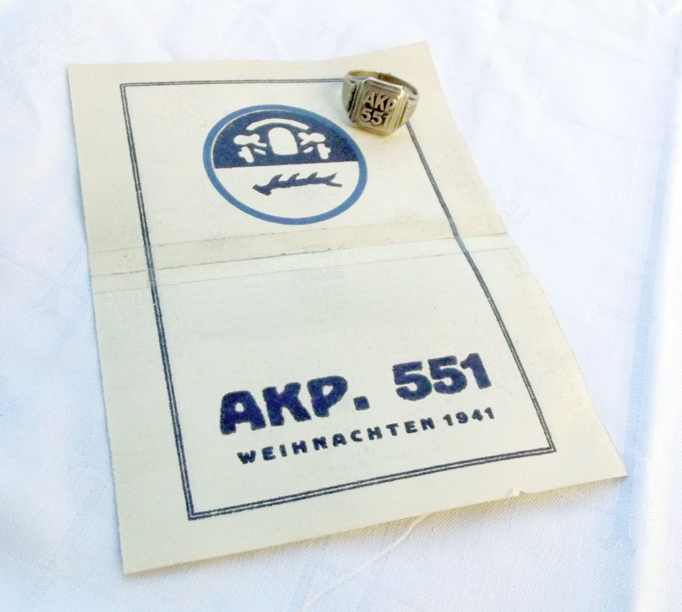 Recently I acquired this ring of Armee-Kraftfahr-Park 551 together with a 1941 Christmas leaflet of the same unit.