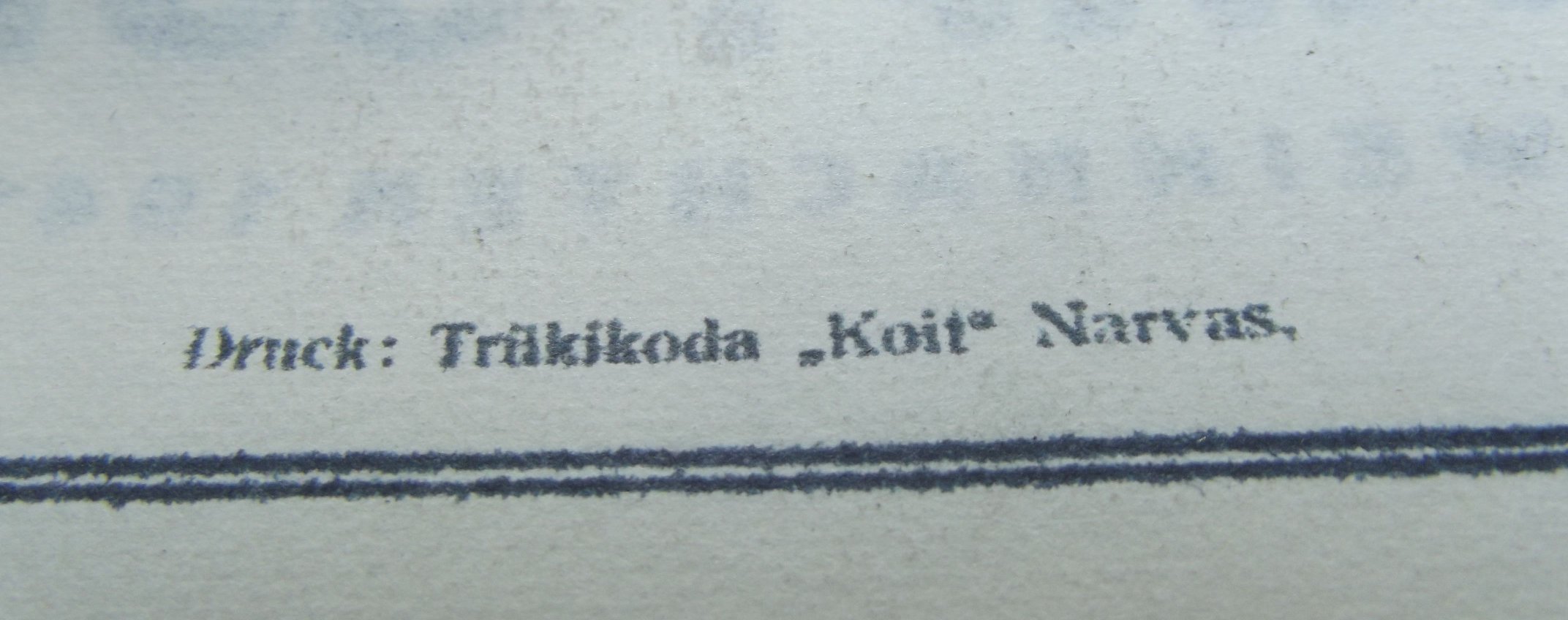 Looks like leaflet was printed in "Koit" printing house in Narva.