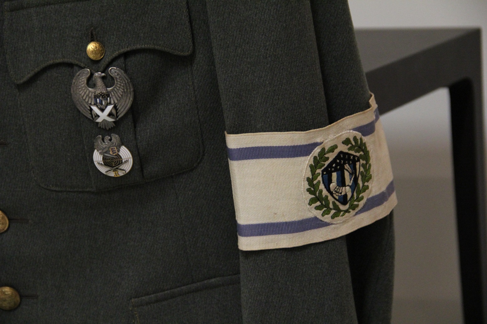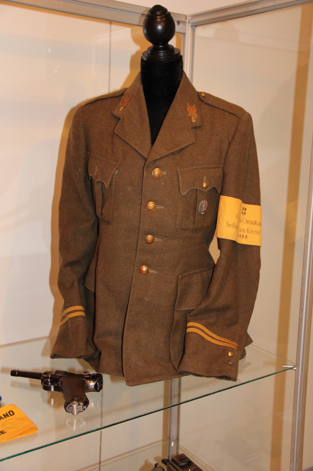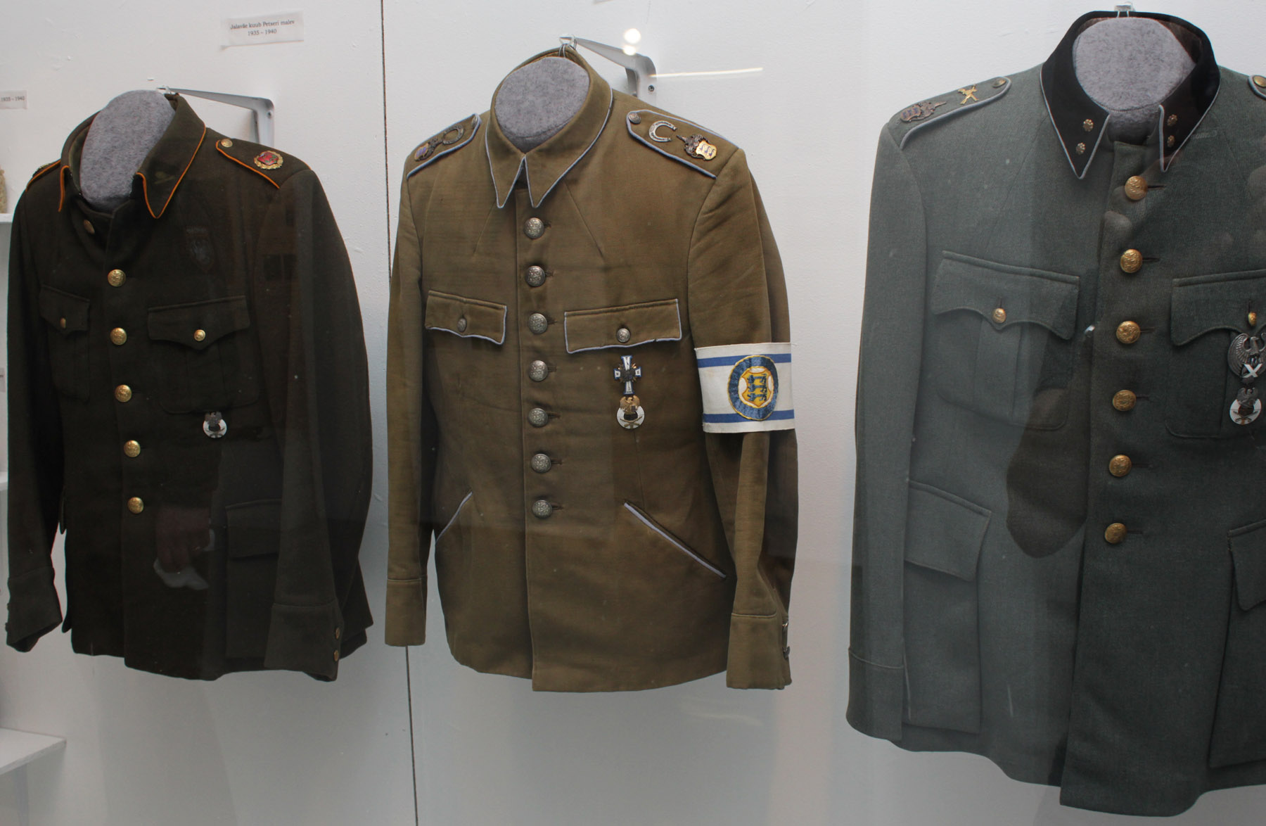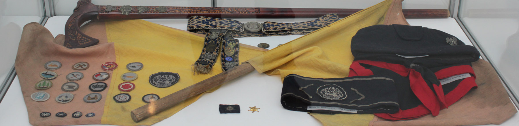 Rikkalik väljapanek originaalesemetest, relvadest ja varustusest pärineb kümnest erakogust (Saaremaa Sõjavara Selts) ja kahest muuseumikogust (Kaitseväe Ühendatud õppeasutuste ja Kaitseliidu muuseumide kogudest). Fotovalik koosneb Kaitseliidu fotogalerii, ajakirja Kaitse Kodu! ja Eesti Filmiarhiivi materjalidest.