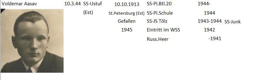 I have a SS-Ustuf Valdemar Assai who served in 20.SS-Frw.Gr.Div. Unfortuantely doesn´t he have a SSO so I don´t have a birthdate or anything else than allready written. If anyone can give me more info on him I would be much greatful.