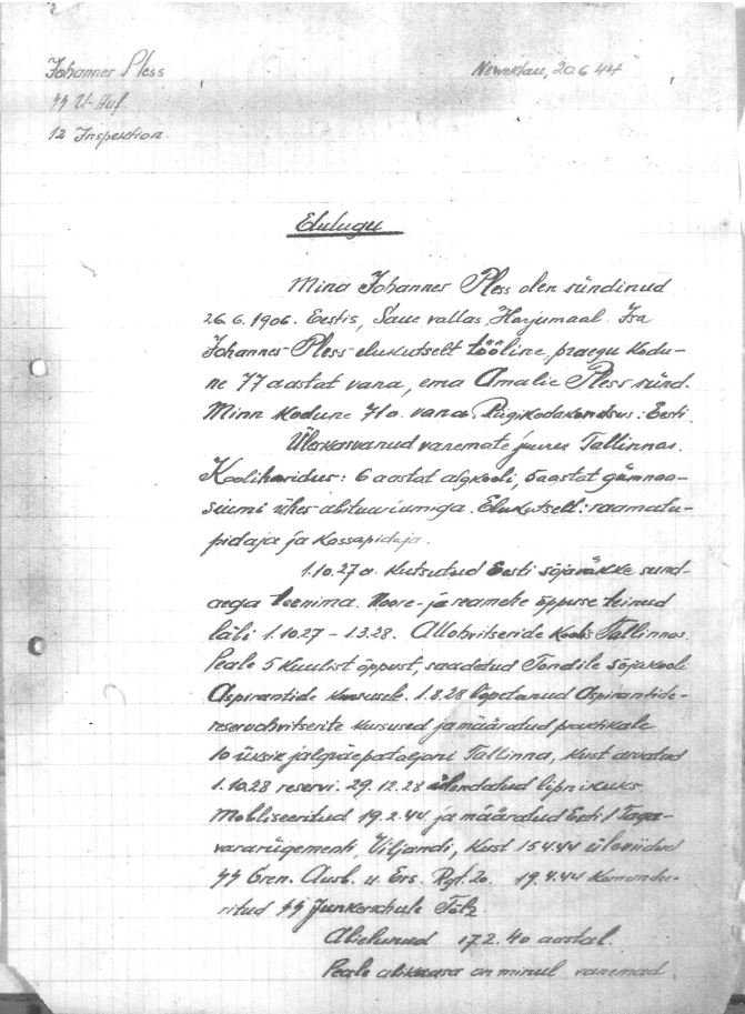Lõpetas Neveklau I kursuse 30.10.44, samal kuupäeval võetud W.-SS-i kui W.-Ustuf.