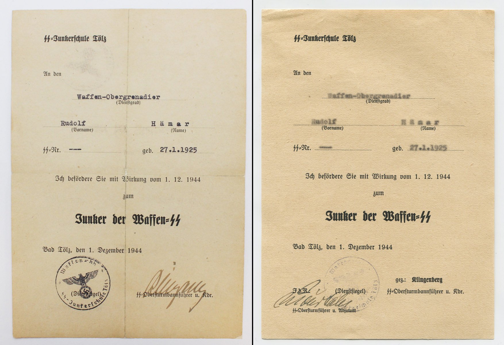 He served in the 20.SS after finishing course at SS-JS Tölz in 1944.