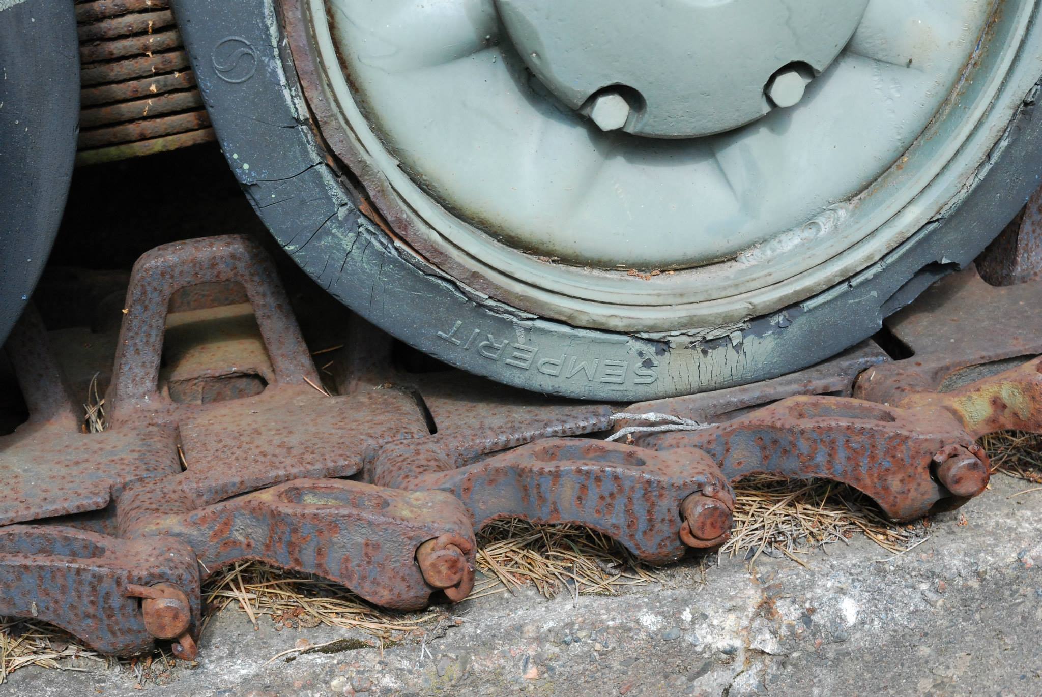 Ühe Põhja-Liivimaa firma tagaõues selline Rootsi kummroomikutel haagis? poolroomkauto käiguosa? Pealesõjaaegne vast. Roomikulaius u. meeter.