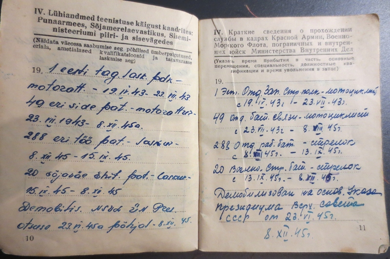 Ja Mehide on tõesti saanud kaks tähte- ühe 44ndal Eestimaa pinnal ja teise Kuramaal. Kui numbreid võrrelda, siis ka see kinnitab eelpool mainitud topelt autasustamist. 11***** tähti on siin Eesti ''vabastamislahingute'' eest antuna teisigi ja 2121*** on see kombinatsioon, mida anti laskurkorpuse võitlejatele Kuramaal. Varasema tähe autasuleht on päris huvitav- Tamsalu, Nõmmküla...