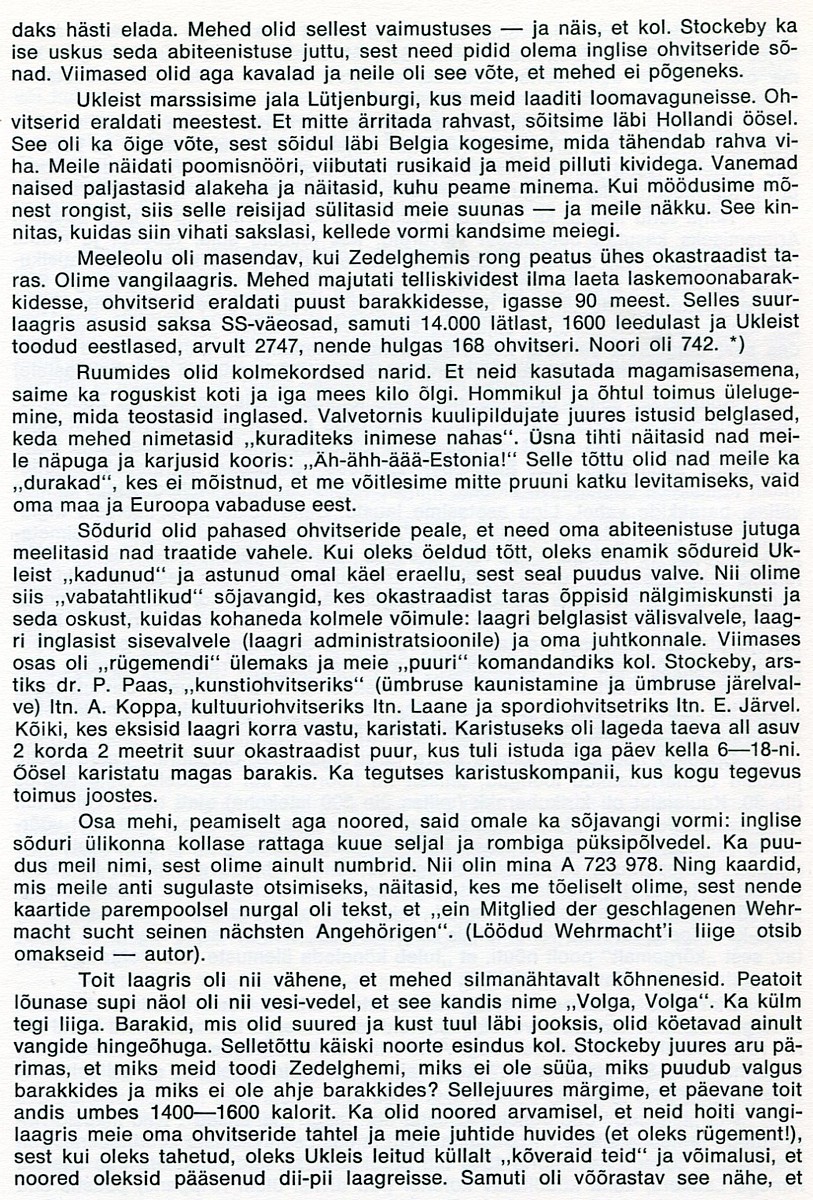 Lisan Neweklau lõpetanud ohvitseri Leho Lumiste (foto Neweklau II kursuse teemas) kirjutise Zedelghemi laagrist.