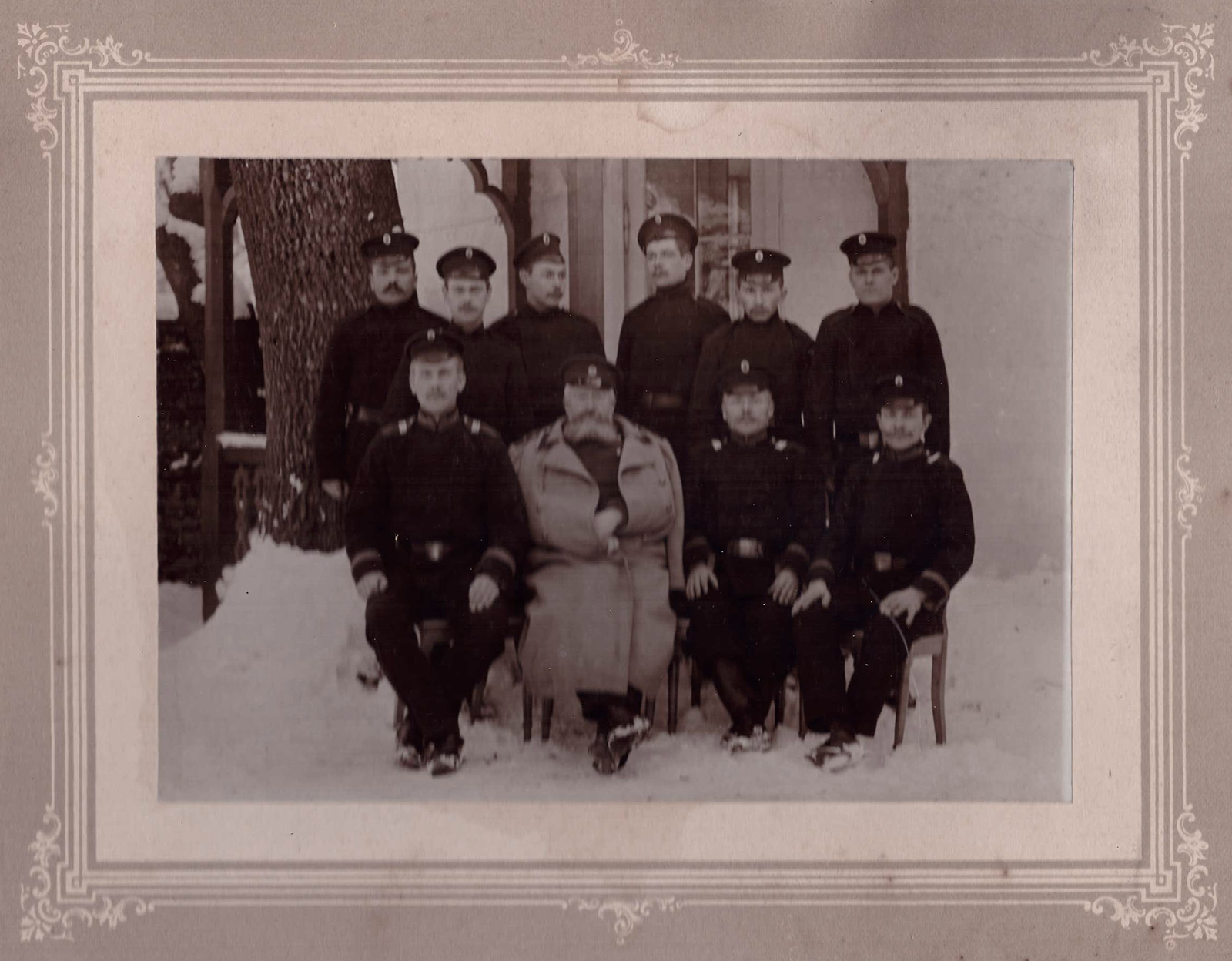 Peaksid kuuluma üksiku piirivalve korpusesse nood mehed. Tunduvad kõigil helerohelise põhjaga vormimütsid olema (v.a. üks, kes võiks olla kohalik politseiametnik või mingi suvine eripära). Rahu ajal allus korpus finantsministeeriumile, sõjaajal sõjateatri piirkonnas olevad üksused aga sõjaministeeriumile.