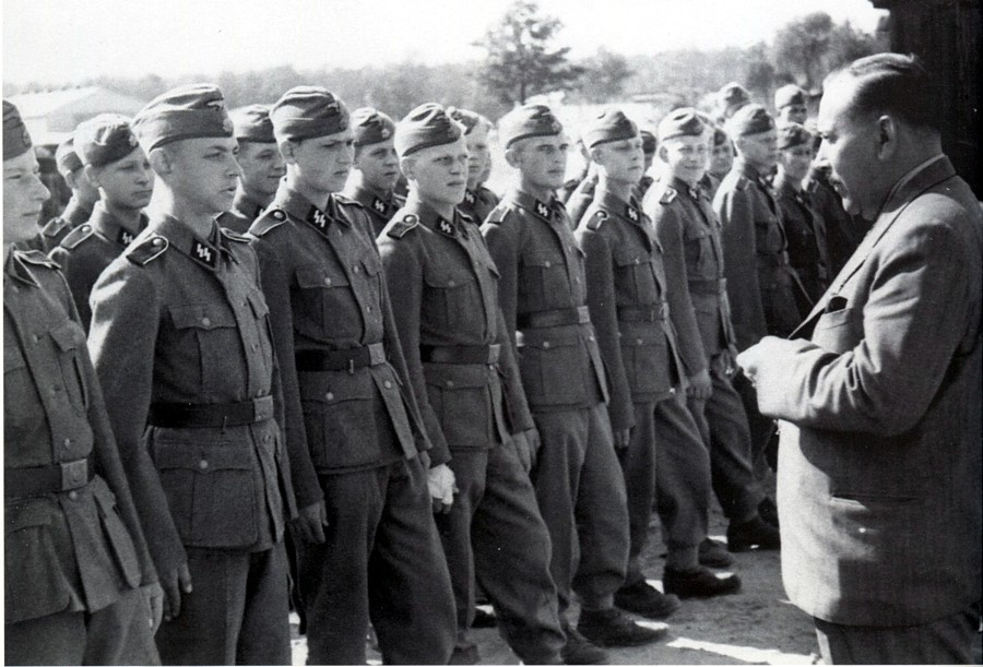 Enne lahkumist, kui olime kasarmute ette rivistunud, andis pataljoniülem (riigisakslane) käskluse: „Reichsdeutsche vertreten!” Pataljoni ette astus kolm kuni viis Unterscharführer n. Meie rühmas oli üks austerlane, tema polnud Reichsdeutsche. Küll oli aga meie kompanii teises rühmas üks küllaltki tõbras Unterscharführer, kes ette astus. Siis anti meile käsklus: „Vasak pool!” ja pataljon läks manöövritele. Marssisime ja kaevusime, ründasime ja paugutasime. Ühe öö magasime metsas, teise põllukraavis. Sõjamäng oli korralik.