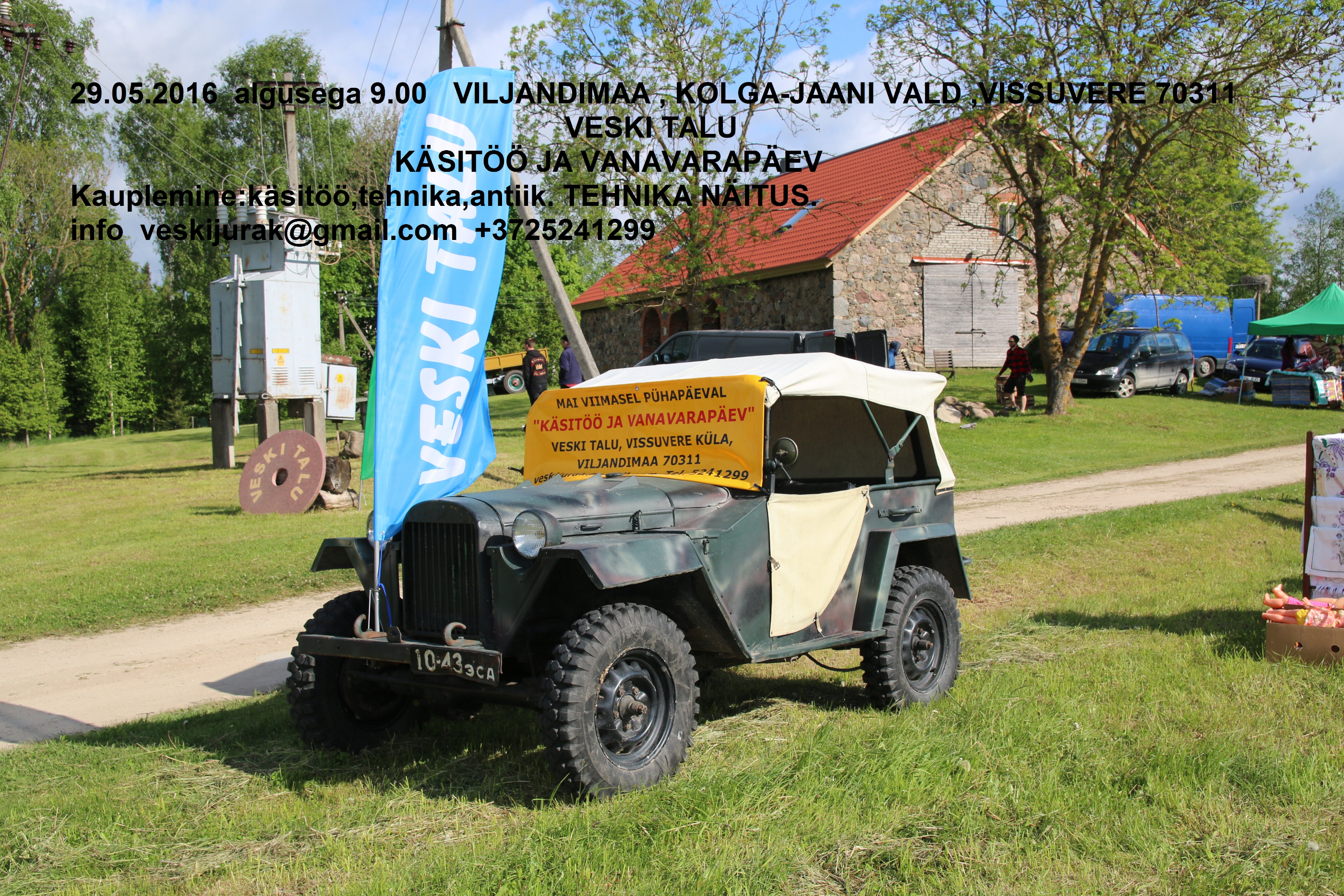 29.mai 2016 toimub Käsitöö-ja vanavarapäev Veski talus.Lisaks traditsioonilistele kauplejatele on ka oodatud SEADUSKUULEKAD militaarihuvilised.
