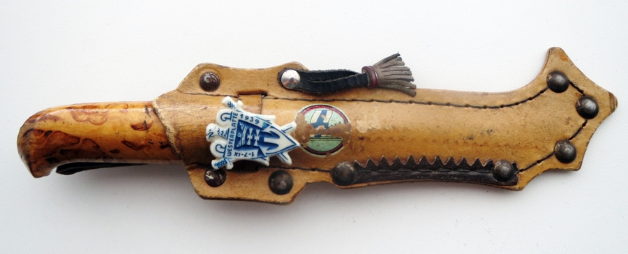 Eestist pärit soomepoisile kuulunud soome puss, terav, kui kurat. Sõjaaegne, huvitava pressitud papist tupega, sest eks nahka oli mujale sel ajal rohkem vaja.