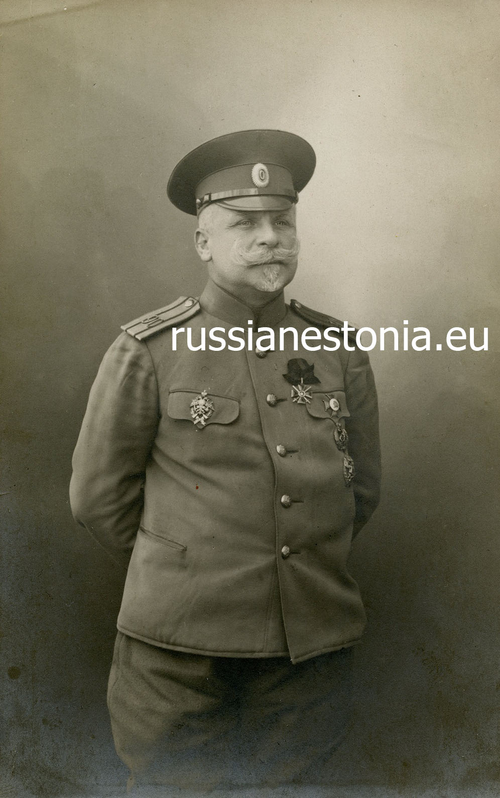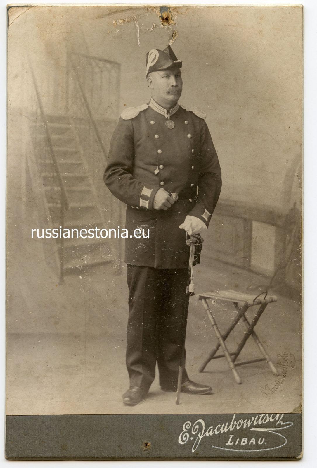 Подполковник окружного интендантского управления Петербургского военного округа Валериан Карлович Яухци. Tal on rinnamärgid 91-го пехотного Двинского и 92-го пехотного Печорского полков.