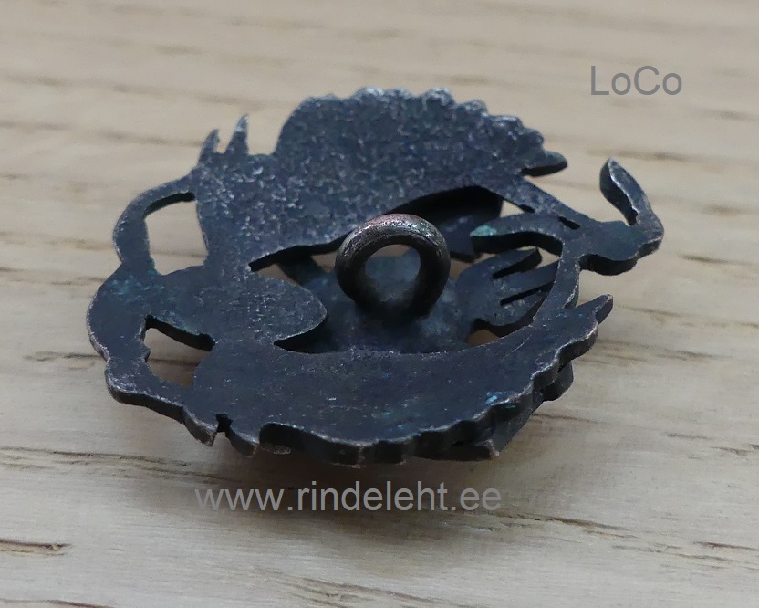 Kõrgus 26mm, laius24mm. Märk on nööbi tüüpi kinnitusega, ilmselt õmmeldi vormile.
