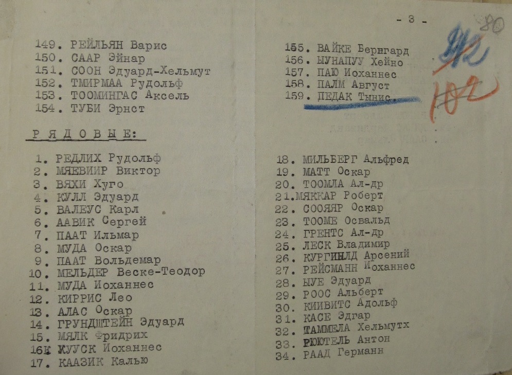 Uscha selle lendlehe väidetavate 36. pati hukkunute nimedega küll juba postitas, aga panen siia kodumaises arhiivis näppu jäänud vene keelse alusteksti. Üks-ühele sama nimekiri.freiwilliger kirjutas: ...Seega, peaks suurema osa nimesid saama kätte sellelt lendlehelt...