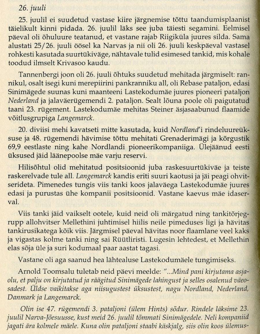 26. juuli hommikuks kell 8.00 on kõik 109. laskurdiviisi allüksused toimetatud Narva jõe läänekaldale ja alustavad edasiliikumist.