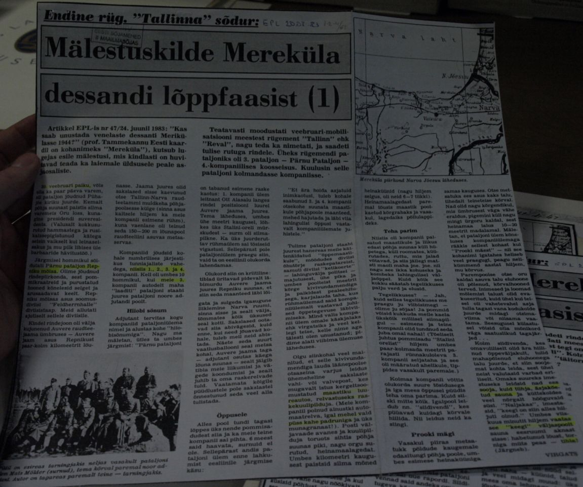 Mälestused Mereküla dessantlastega peetud lahingust.