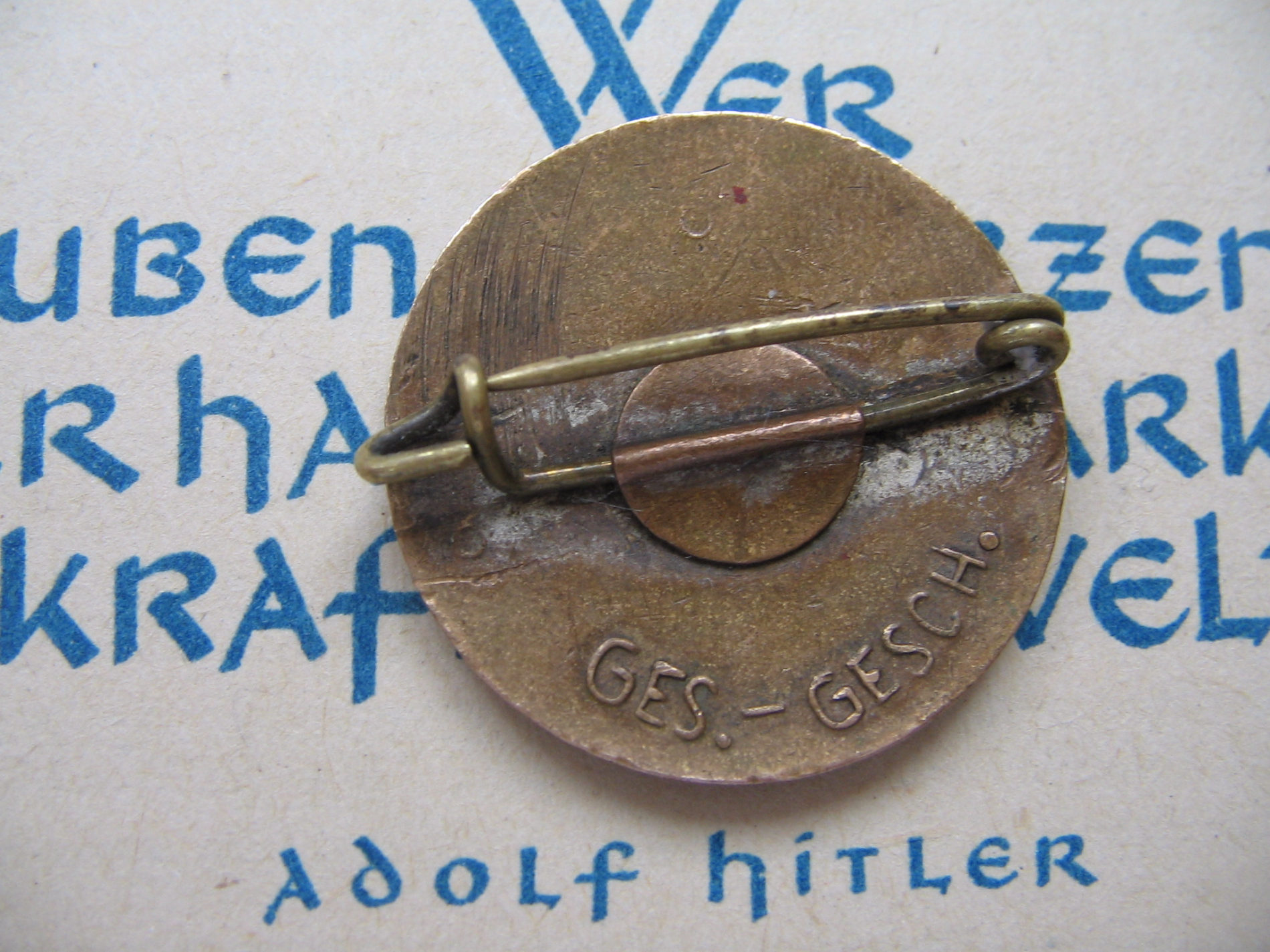 Üks varase perioodi märk - markeeringutest vaid GES.GESCH. Märk on valmistatud enne aastat 1932.
