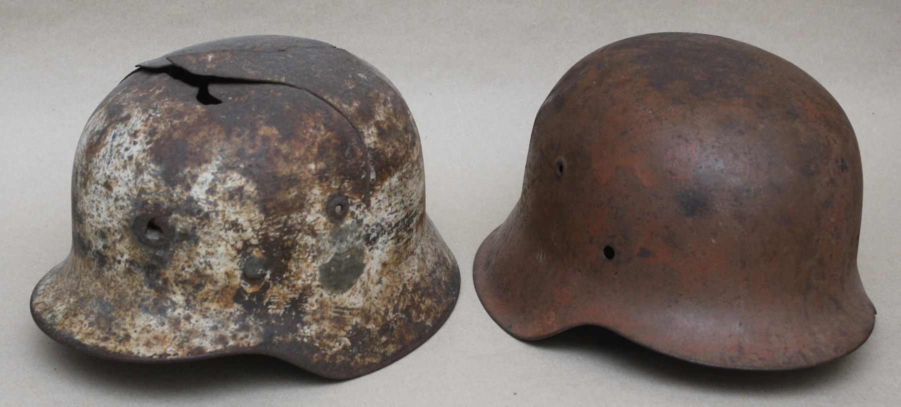 Esimesel pildil on kaks kodumaist lahingujälgedega camo kiivrit - mõlemad on ilma sisudeta aga just camo tõttu olengi need alles hoidnud.Kindral kirjutas:Näita seda teist kiivrit, kas punakaspruun camo või hilisem mingi säilitusmöks?