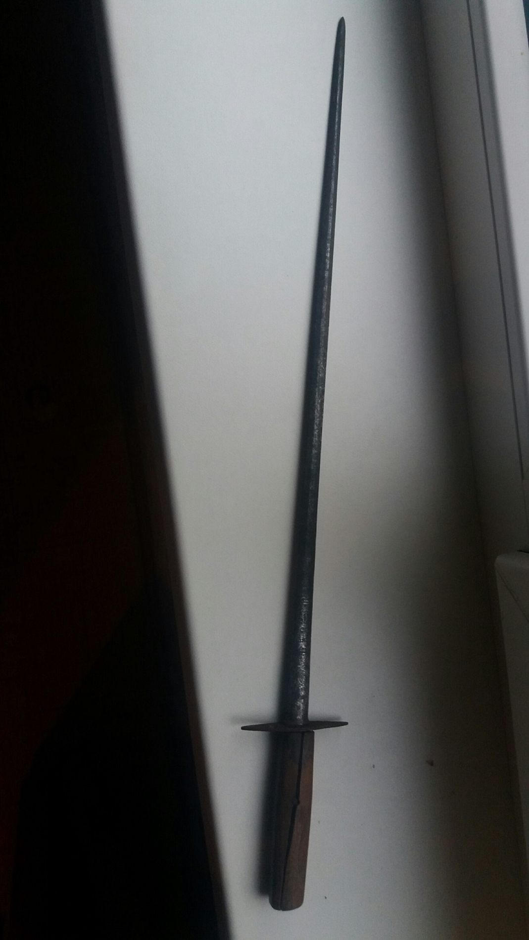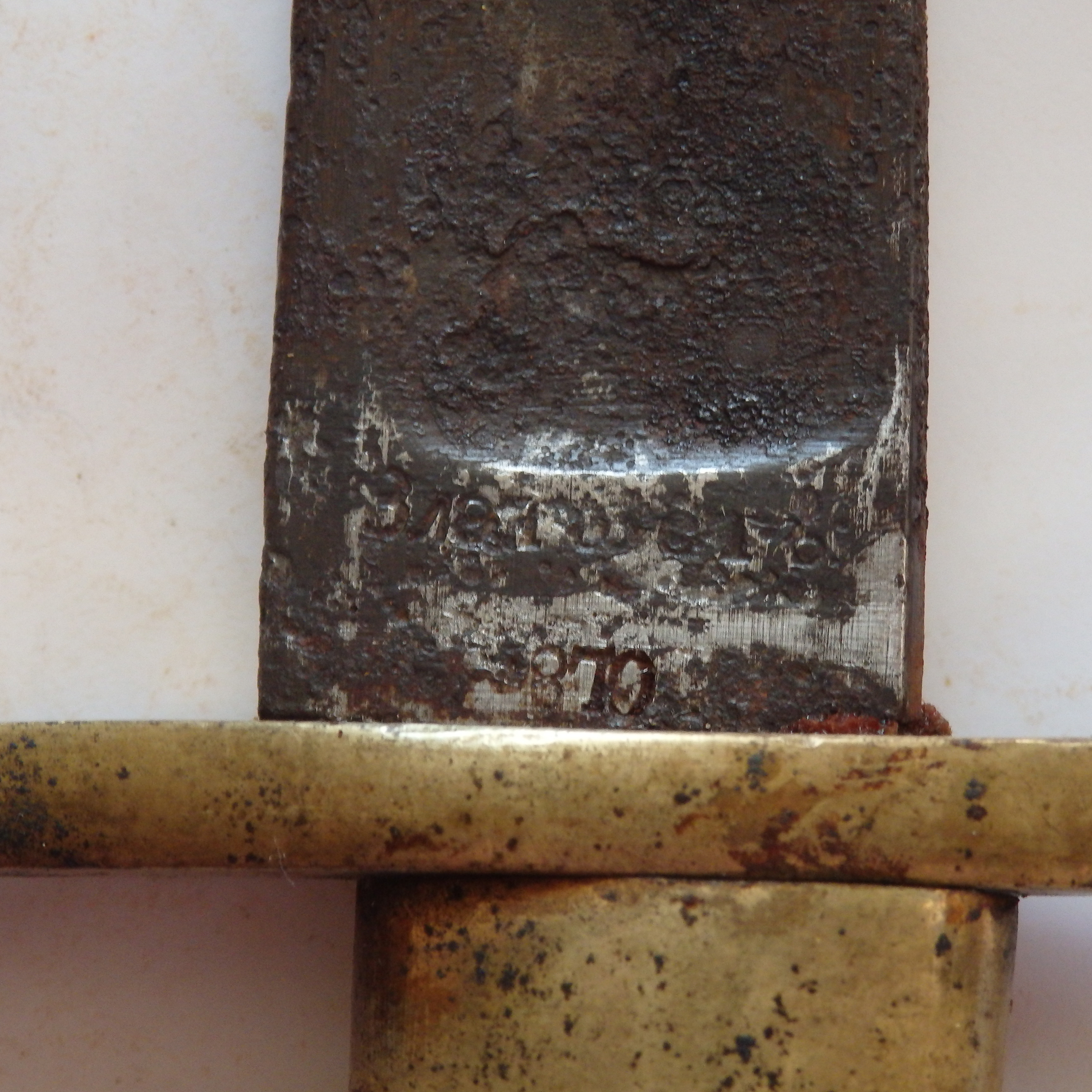 Kui käepide on eboniidist, mitte puust, siis tegu on traguniohvitseri saškaga, mudel 1881/1909, aga midagi on seal ikkagi imelikku, et mitte öelda valesti, käepidemest võiks täpsem pilt olla ja teral olevad kirjad ka välja puhastada, kaotada pole seal suurt midagi.