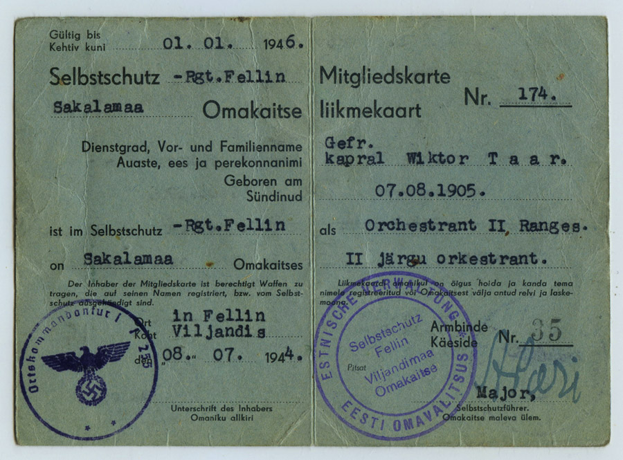Sakalamaa Omakaitse liikme, kapral Viktor Taar'i liikmekaart.