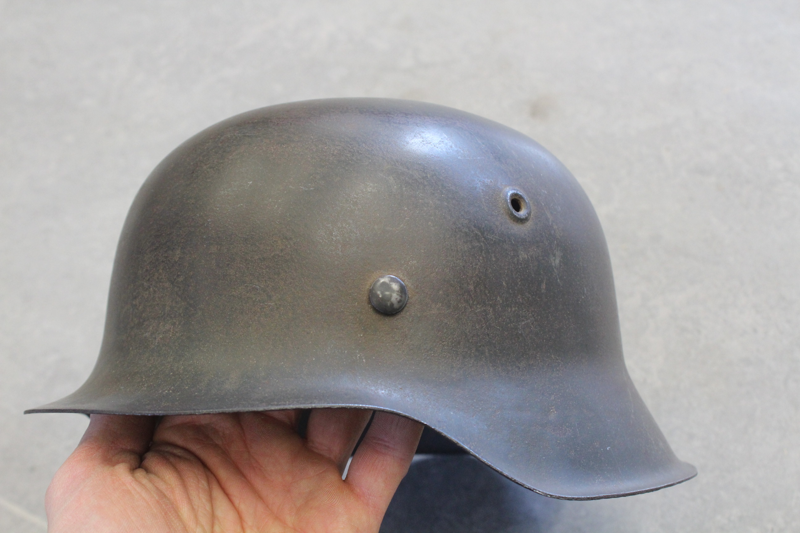 M 42 kiiver. Kunagi kleepisin SS-i vesikleepsu mille hiljem eemaldasin. Nahk on sees ok. Ei ole "baranka". Kaks "kõrva" oli otstest katki ja parandasin kunagi ära. Pildil näha. Nöör on sees originaal. Kiiver lebas kunagi Tallinfilmi pööningul.
