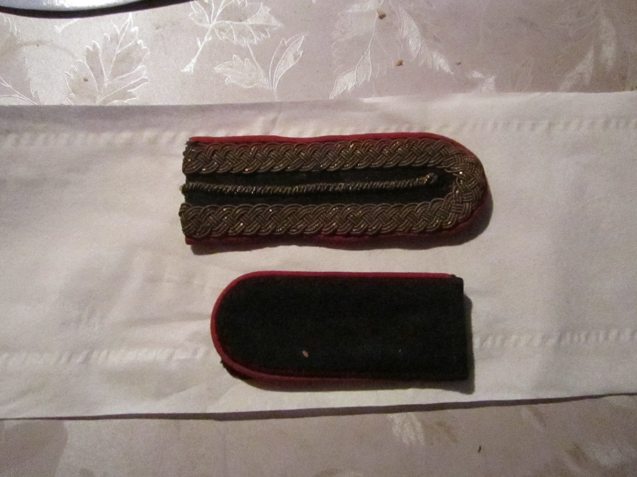 T eine pagun 13cm. pikk,laius4,5cm. Ümbritsetud punasese randiga, ümber (paguni peal)jookseb1cm.laiune kuldne põimitud lint ja paguni keskel on kuldne punutud kitsas triip mustal pinnal.