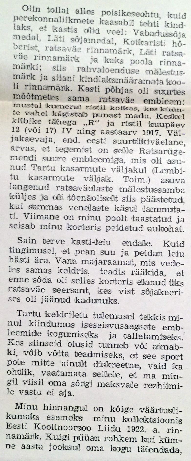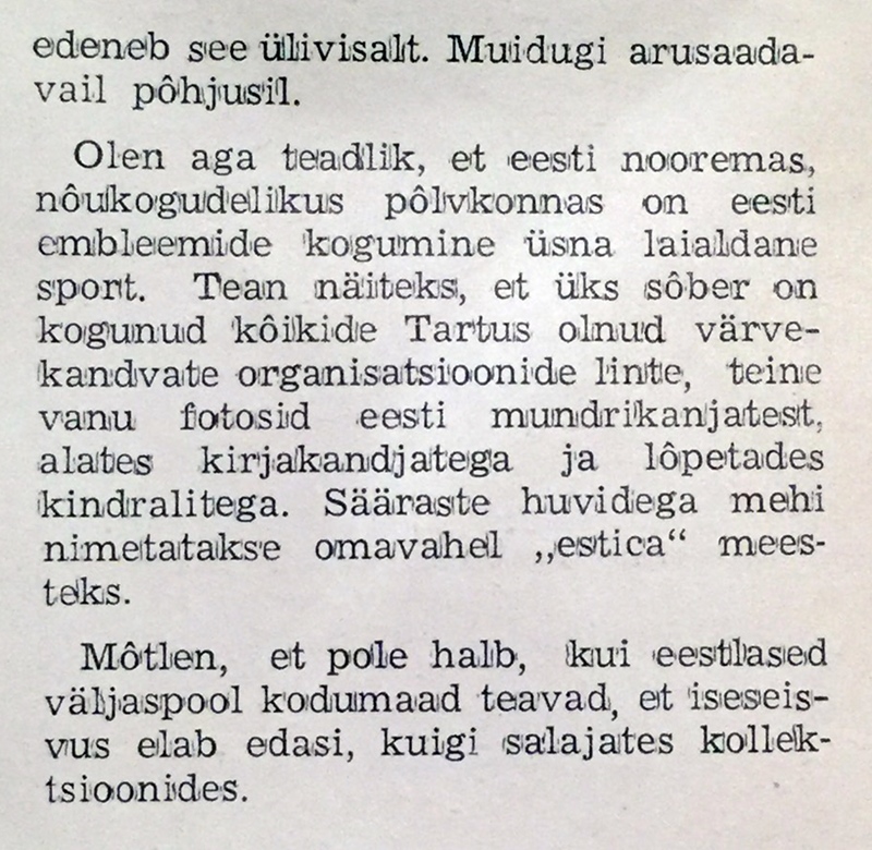 Päris pull artikkel 1975.a väliseesti ajalehest ''Võitleja''. Huvitav, kes see koguja oli?