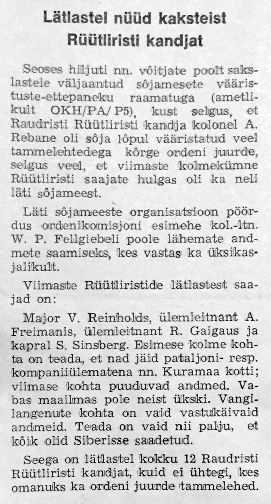 Re: Lätlastel nüüd kaksteist Rüütliristi kandjat