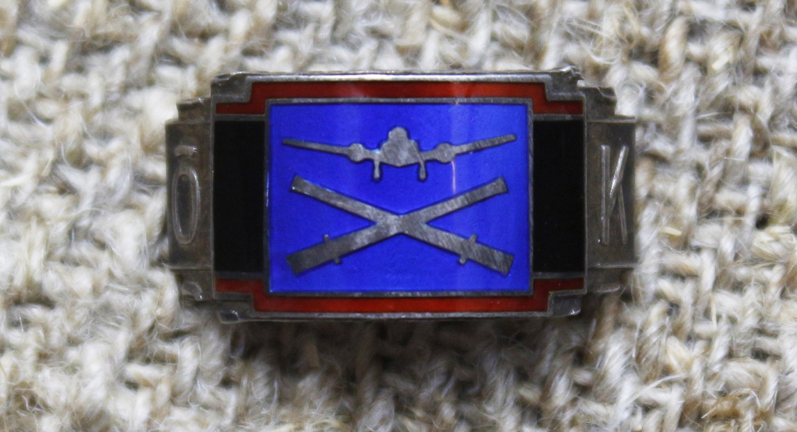 Tähed Õ ja K, lennuk ja ristatud kahurid viitavad ilmselgelt õhukaitsele. Teostuse järgi pakuks valmistamisajaks 1930-ndate lõpu.