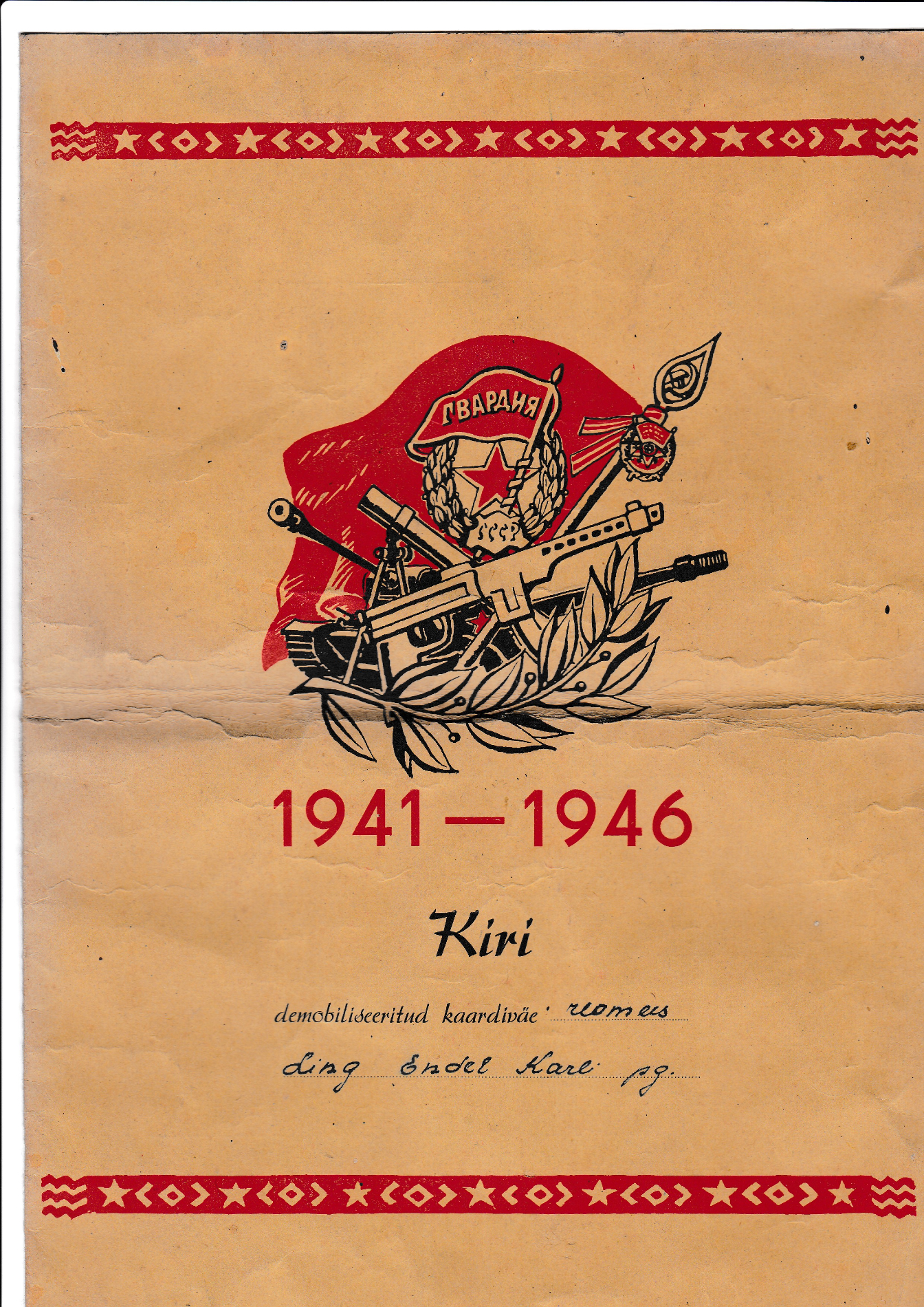Kirju kahe aastaarvuga: 1941 - 1945 ja 1941 - 1946.