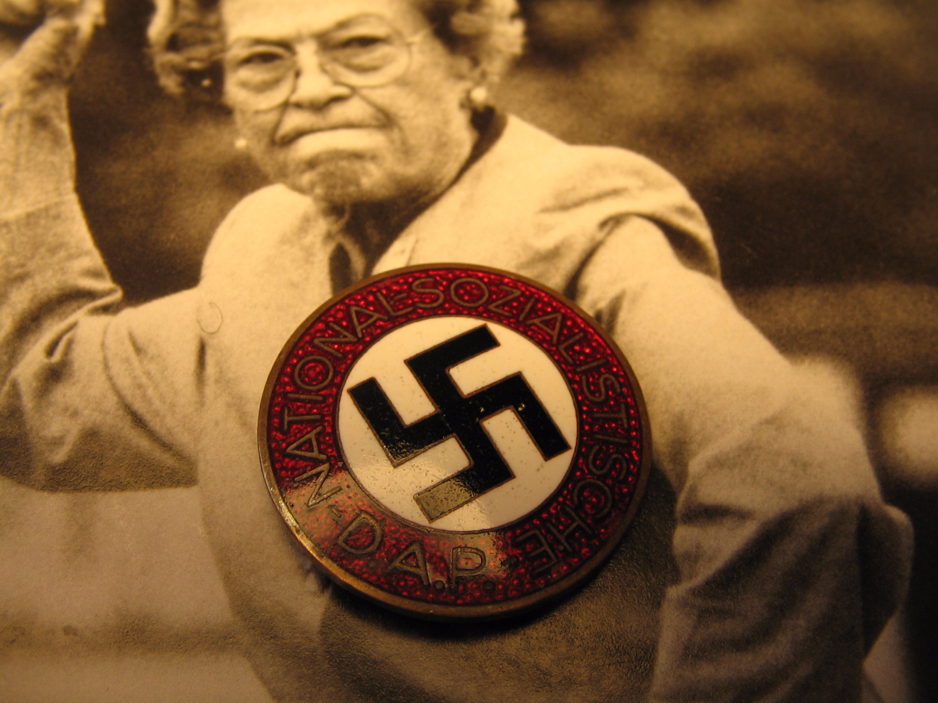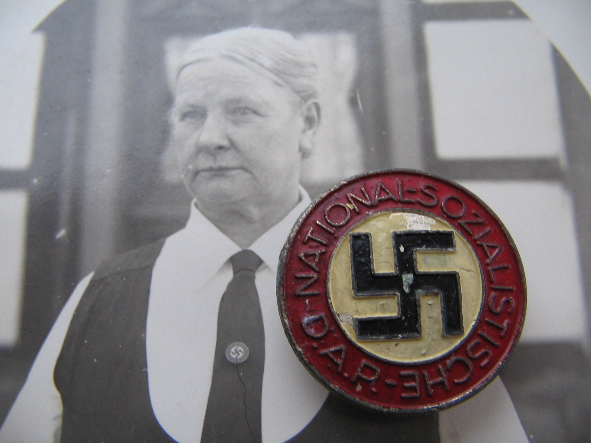 Märgi taustal on kujutatud tüüpilist natsivanaema, kes kannab uhkusega oma parteimärki. Nagu näha, siis natsionaalsotsialism ei küsinud ei su soost ega vanusest.