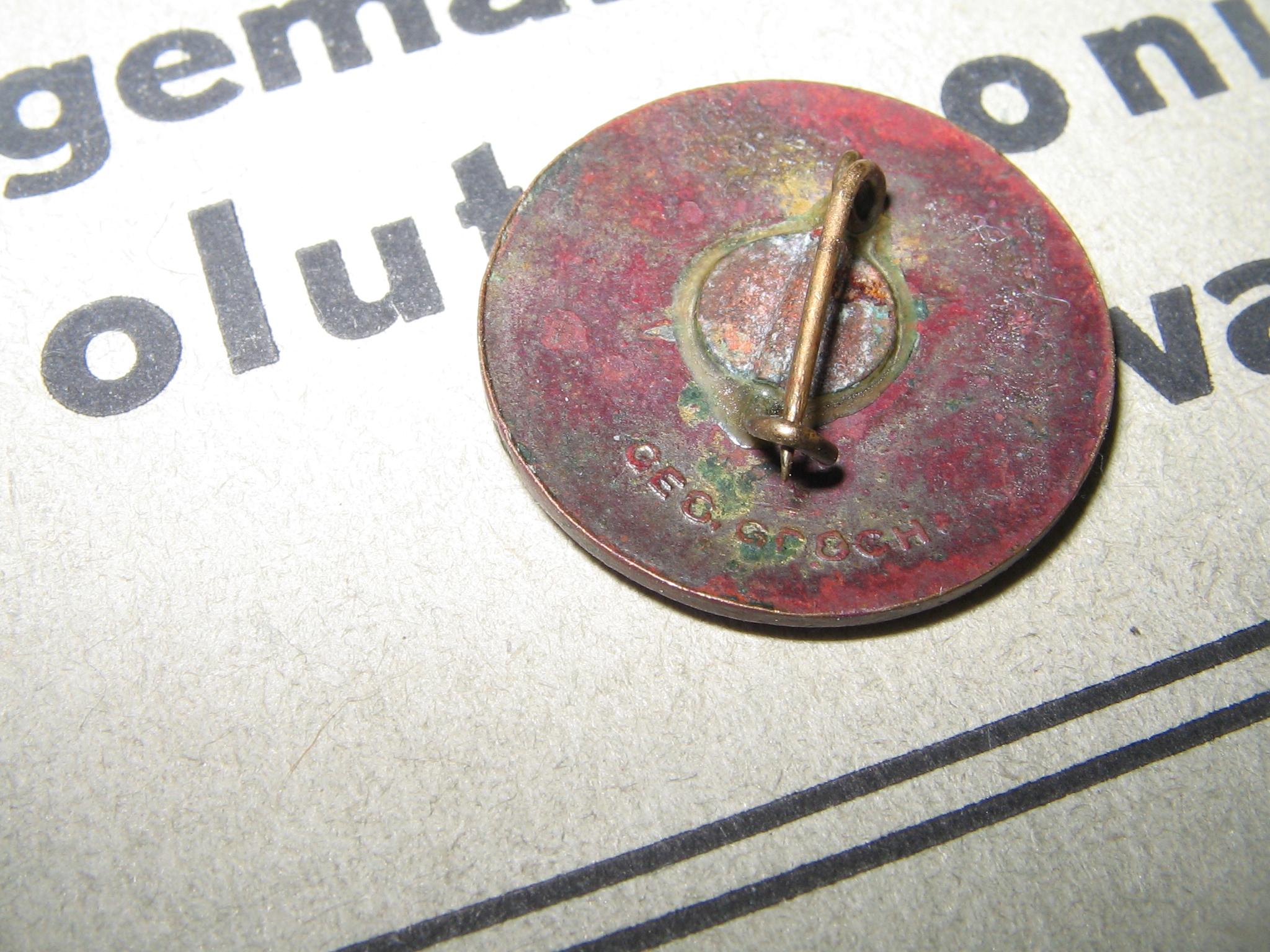 Ges.Gesch. markeeringuga märk on muide isegi erandlikult Eestist ostetud, kuidas see märk aga siia jõudis, pole teada. Kuigi märgi email on kahjustunud ja ka nõela on keegi juba kunagi ammu ära vahetanud, on tegemist siiski kena varase parteimärgiga.