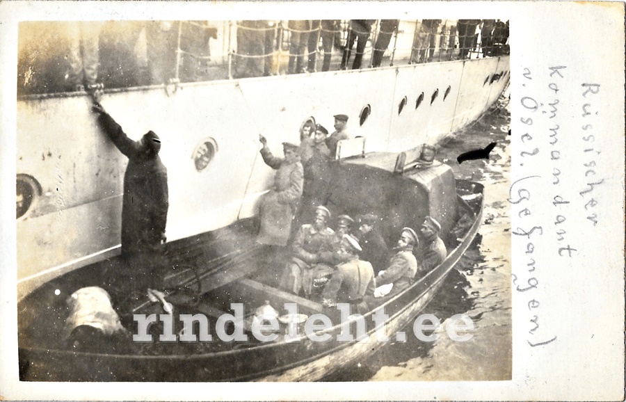 Tekkis küsimus vangi langenud eestlaste kohta. Kas neid hoiti mõni aeg mingi praami peal ja millega neid Eestist ära viidi ? Nimelt oli Osta´s müügil kaart saksakeelse kirjaga, mis väitis : Russischer Bram mit 1 Regt Gefangenen vor Oesel .