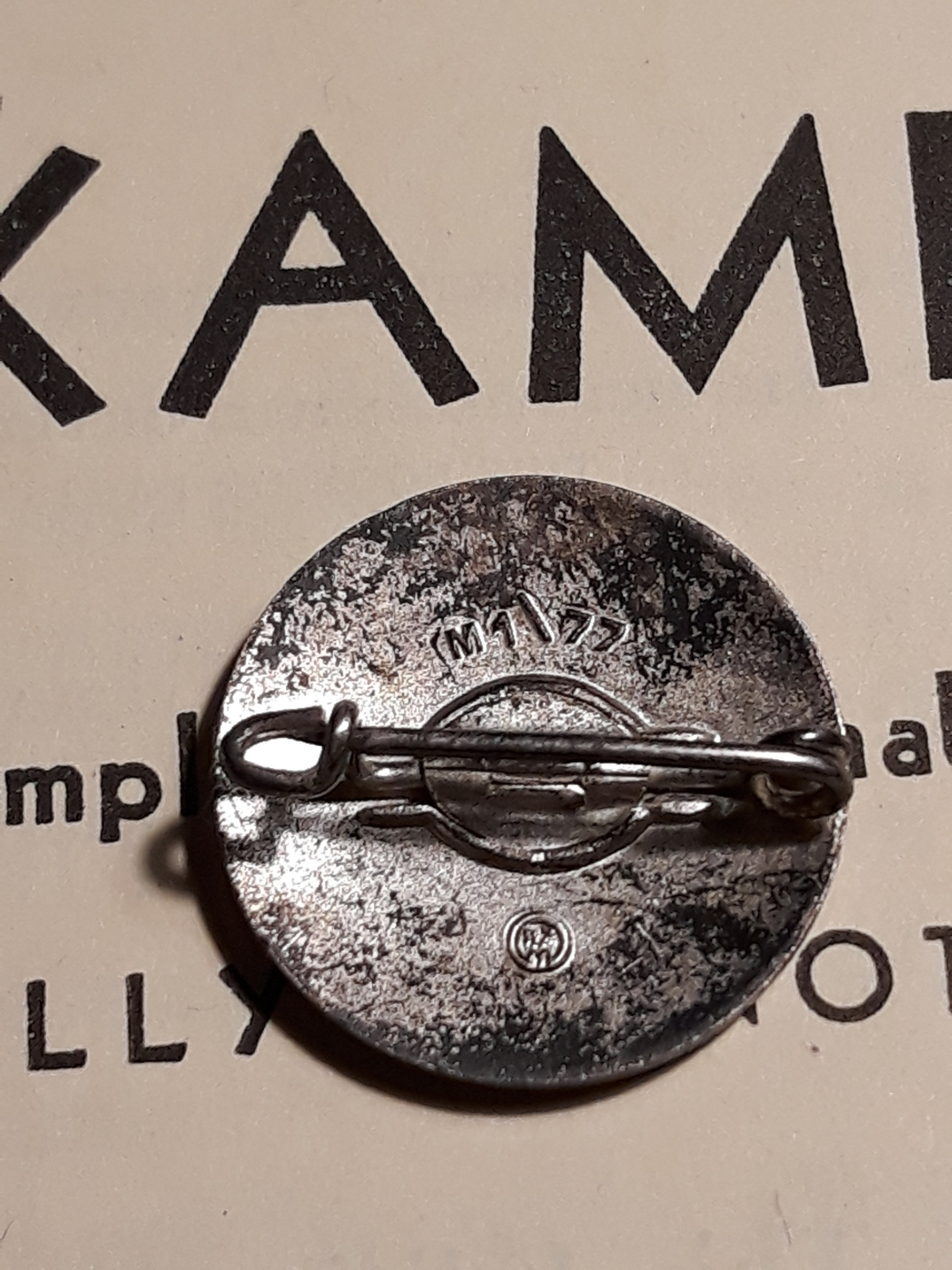 Mõnikord võib rõõmsalt üllatuda ka ilma ühtegi uut märki ostmata ja lihtsalt oma kogu korrastades. M1/34 RZM (Karl Wurster, Markneukirchen) on üks tavalisemaid parteimärkide tootjaid ja seega ei midagi erilist. Minu kogus oli see aga üks esimestest märkidest ja kui sain teise sama tootja märgi, siis mõtlesin kunagi selle kas ära vahetada või müüa. Nüüd kogu korrastades aga selgus, et mul on siiski kaks täiesti erinevat M1/34 märki ja seega pole siin vahetada midagi - märgi tagumised küljed on täiesti erinevad: