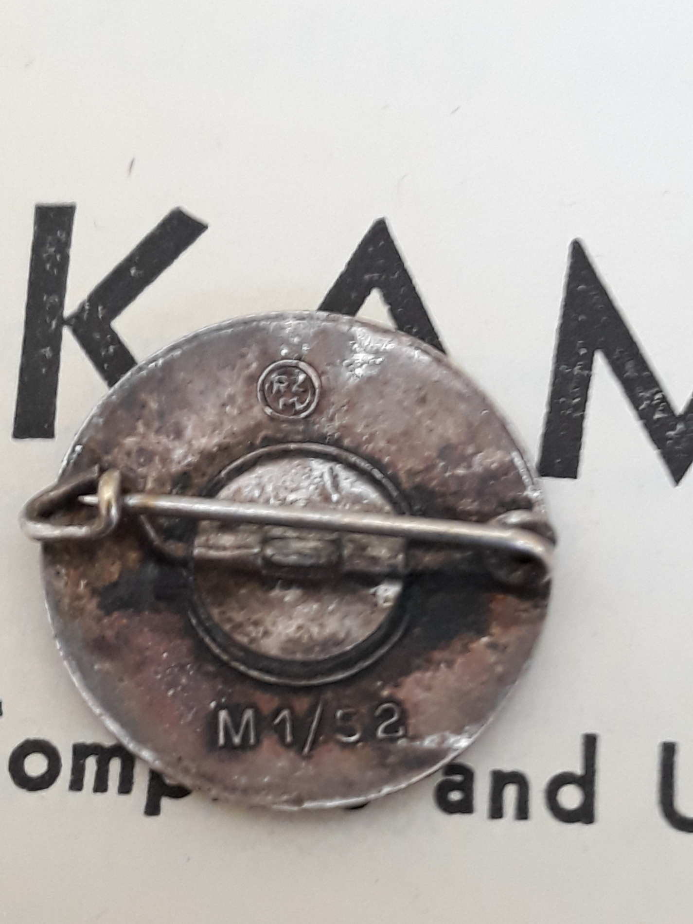 RZM M1/52 ehk Deschler und Sohn on tuttav ja väga levinud tootja. Parteimärkide maailmas on tema toodang aga suhteliselt vähem liikuv. Ei oskagi öelda, miks selline suurettevõte parteimärke vaid tagasihoidlikus koguses toota võttis võrreldes kõigi muude märkide ja autasudega.